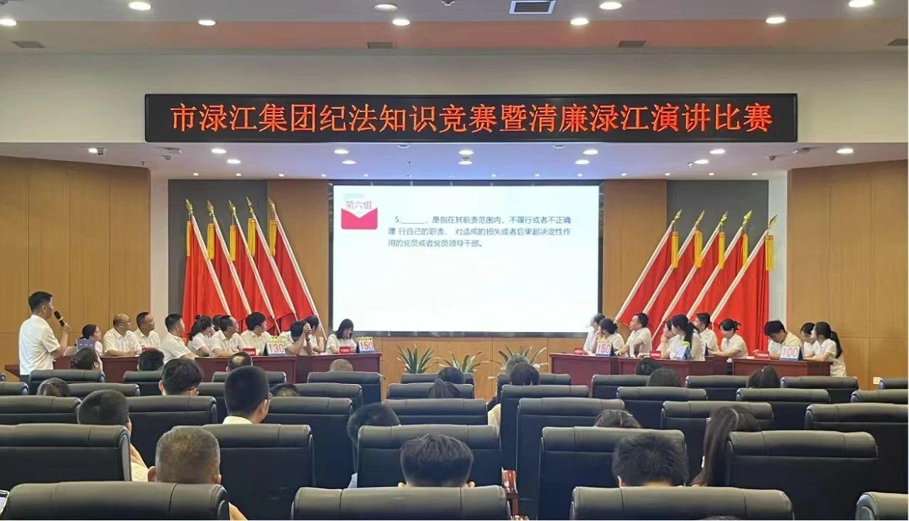 2024-06-22 踐行“紀法于行 廉潔于心”,淥江集團這樣做…… 6月21日下午,淥江集團組織開展“紀法于行?廉潔于心”紀法知識競賽暨演講比賽。本次紀法知識競賽以《中國共產黨紀律處分條例》為內容,設置了小組必答題、搶答題及附加題等環節,共有集團本部、城投運板塊、產投板塊等8支隊伍參賽。競賽現場氣氛活躍,各代表隊參賽選手思維敏捷、沉著應答。場上選手經過幾輪激烈角逐,最終,城投運板塊選手榮獲第一名。在隨后進行的演講比賽中,11位參賽選手緊扣“清廉”主題,結合自身工作